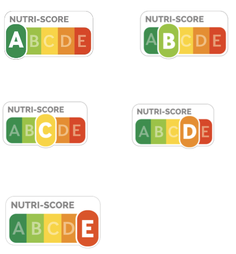 O sistema classifica os produtos por cores (verde escuro, verde claro, amarelo, laranja e vermelho) e letras (do A ao E, respetivamente). Um produto classificado com a letra “A” sobre fundo verde escuro, é um alimento mais interessante do ponto de vista nutricional, do que um produto classificado com a letra “E” sobre um fundo vermelho (Figura 1).